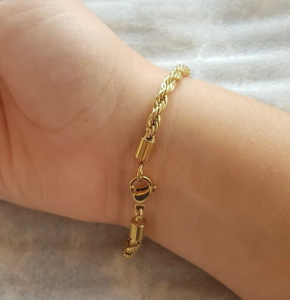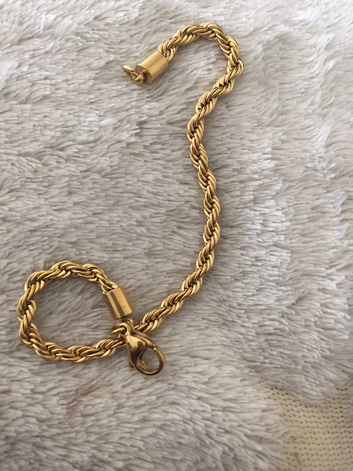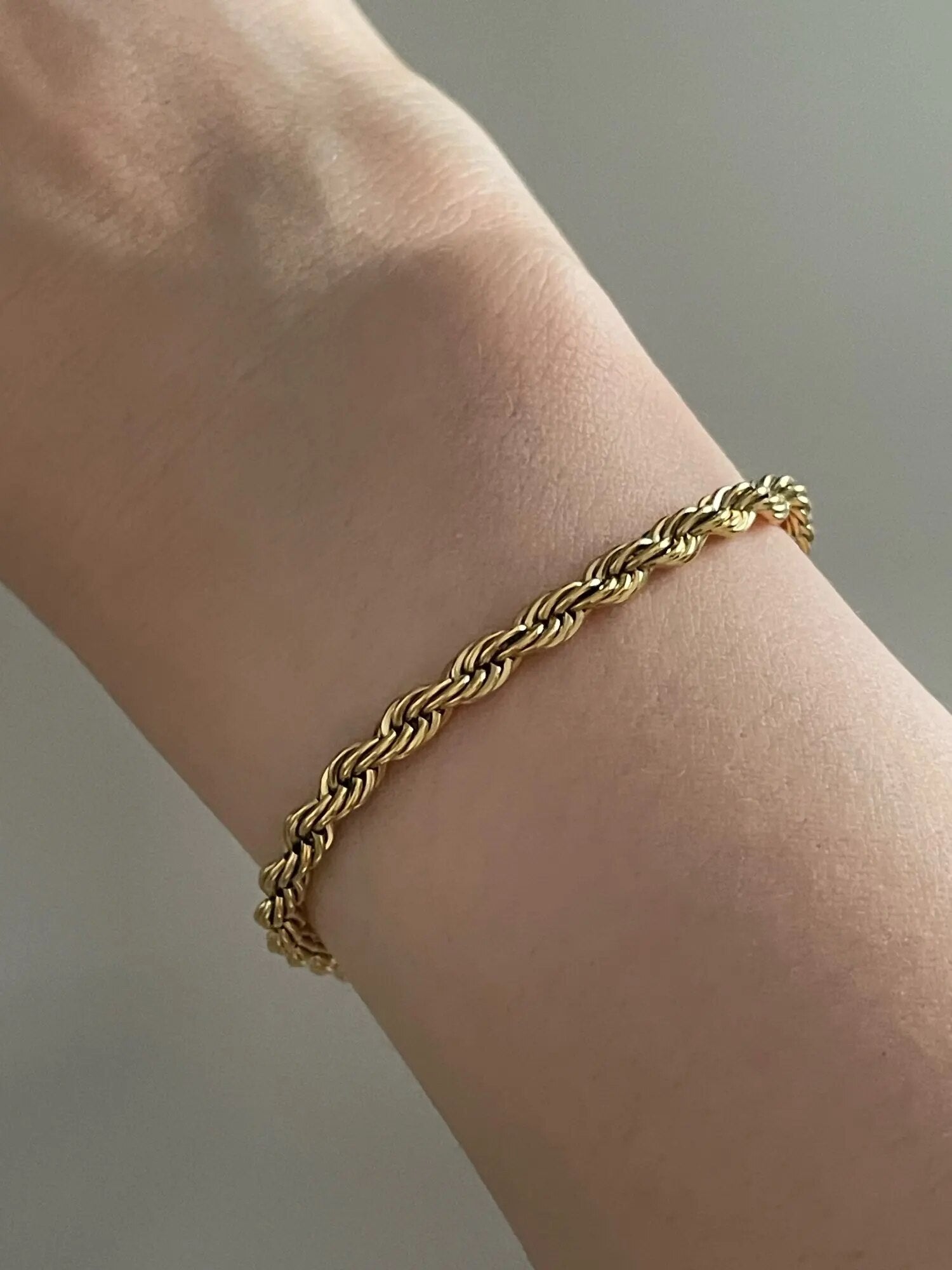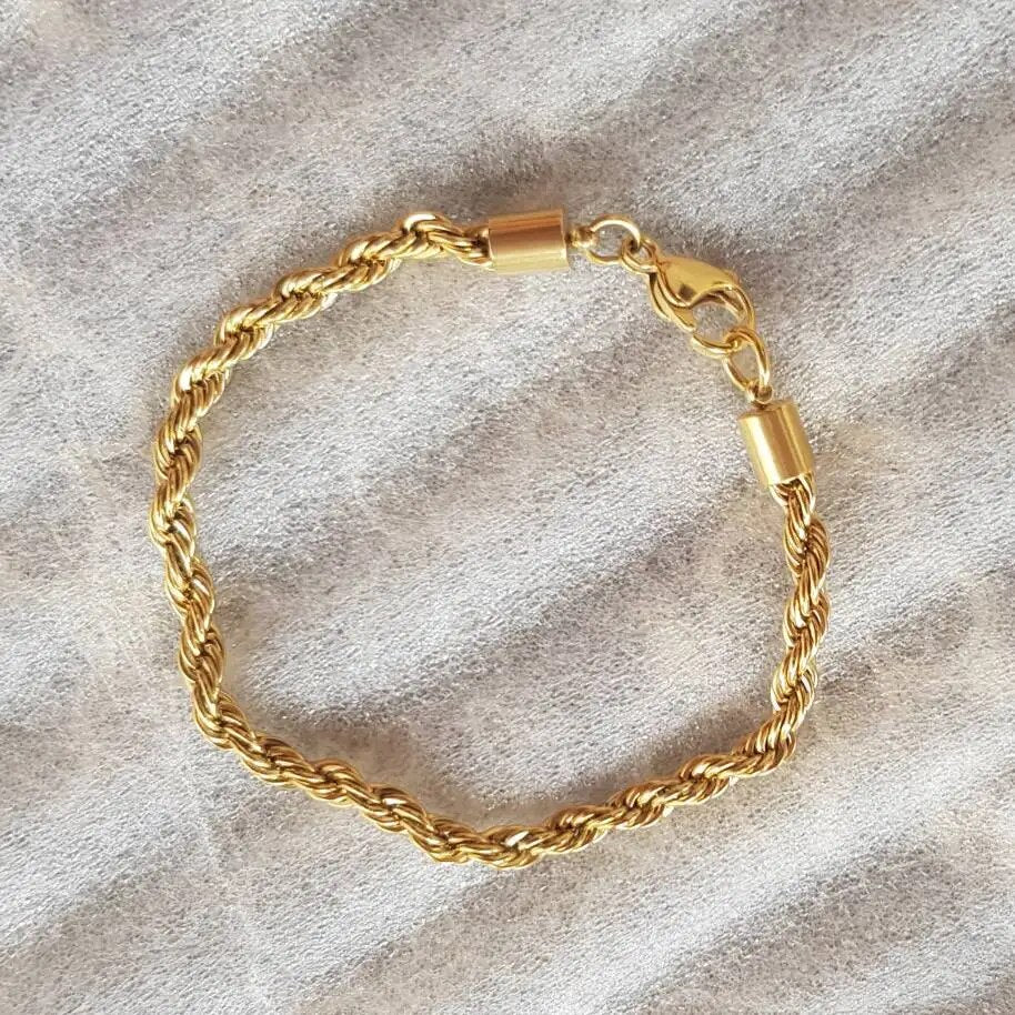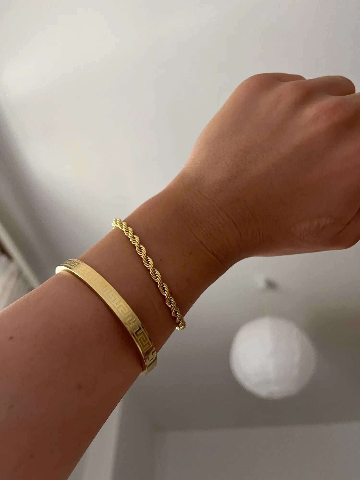 Il Bracciale Intrecciato dorato TWIST da 4 mm, così come la sua omonima collana è un capolavoro di eleganza e artigianato, unendo maestria artigianale e design accattivante in un'unica creazione senza tempo. Le maglie dorate intrecciate con precisione trasmettono un senso di raffinatezza e armonia.